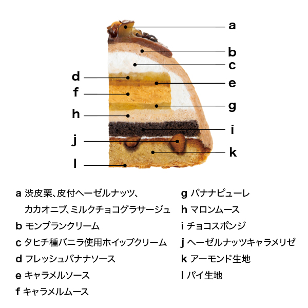 商品説明 | 栗とタヒチ種バニラビーンズの華やかな香りに、キャラメルとバナーヌのハーモニーが重なり合う…素材のバランスが光る逸品モンブラン |
