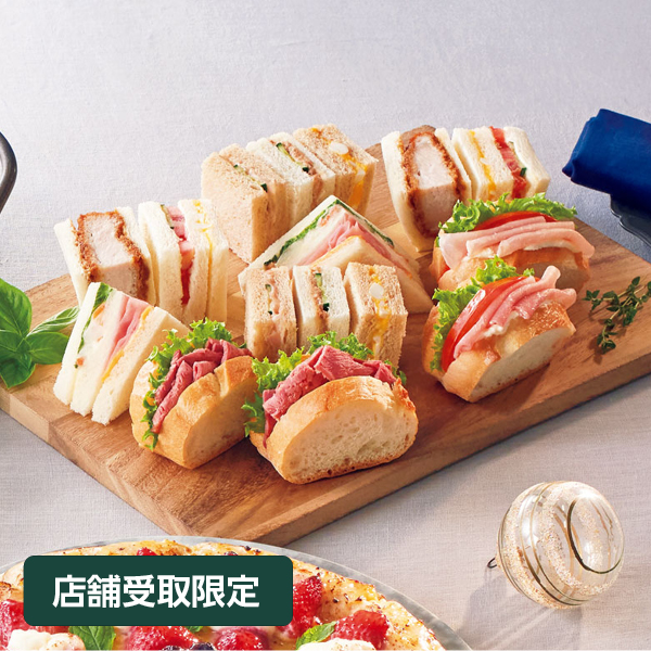 商品説明 | ローストビーフ、生ハム、ロースカツなどクリスマスに合った具材を選定したパーティーサンドボックスです。 |