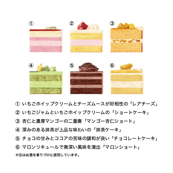商品説明 | 彩り豊かにバラエティ感のあるアソートケーキに仕上げました。家族で楽しくシェアできます |