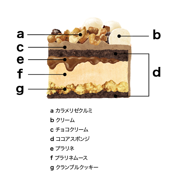 商品説明 | プラリネムースを使用し、カラメリゼしたくるみをトッピングした贅沢な木の実のチョコレートケーキです |