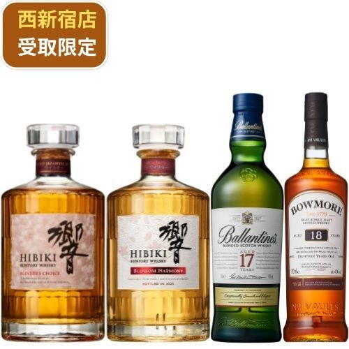 商品説明 | 【響ブレンダーズチョイス】 多種多様な樽で熟成を深めた幅広い酒齢の原酒を厳選し、匠の技で繊細なブレンドを重ねました。奥深く甘やかな味わいと、華やかでやわらかい香り。ワイン樽後熟原酒を加えることで生まれた、珠玉のハーモニーをご堪能いただけます。 【響 ブロッサムハーモニー 2025】 幾度もの四季を経てしっかりと熟成させた多彩な原酒に、桜樽で後熟させた希少な原酒をブレンドした特別な「響」。花を思わせる芳しい香りと、円やかで調和のとれた味わい、伸びやかで甘く豊かな余韻のハーモニーをお愉しみいただけます。 【バランタイン17年】 1937年の誕生以来 “ザ・スコッチ”として称えられ、世界中のウイスキー通に垂涎の的とされる類まれな逸品です。華やかで円やかな味わいが特徴。長期熟成原酒を使用した贅沢なスコッチです。 【ボウモア18年】 「ボウモア」の特長であるシェリー樽に由来するスウィート感が際立つ、贅沢なモルト。フィニッシュまでこころゆくまで楽しめる。味わいは軽やかなスモーキー・フルーツ・チョコレート・柔らかな甘み。 |